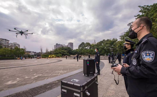 公安利用巡檢無人機喊話 保障冬